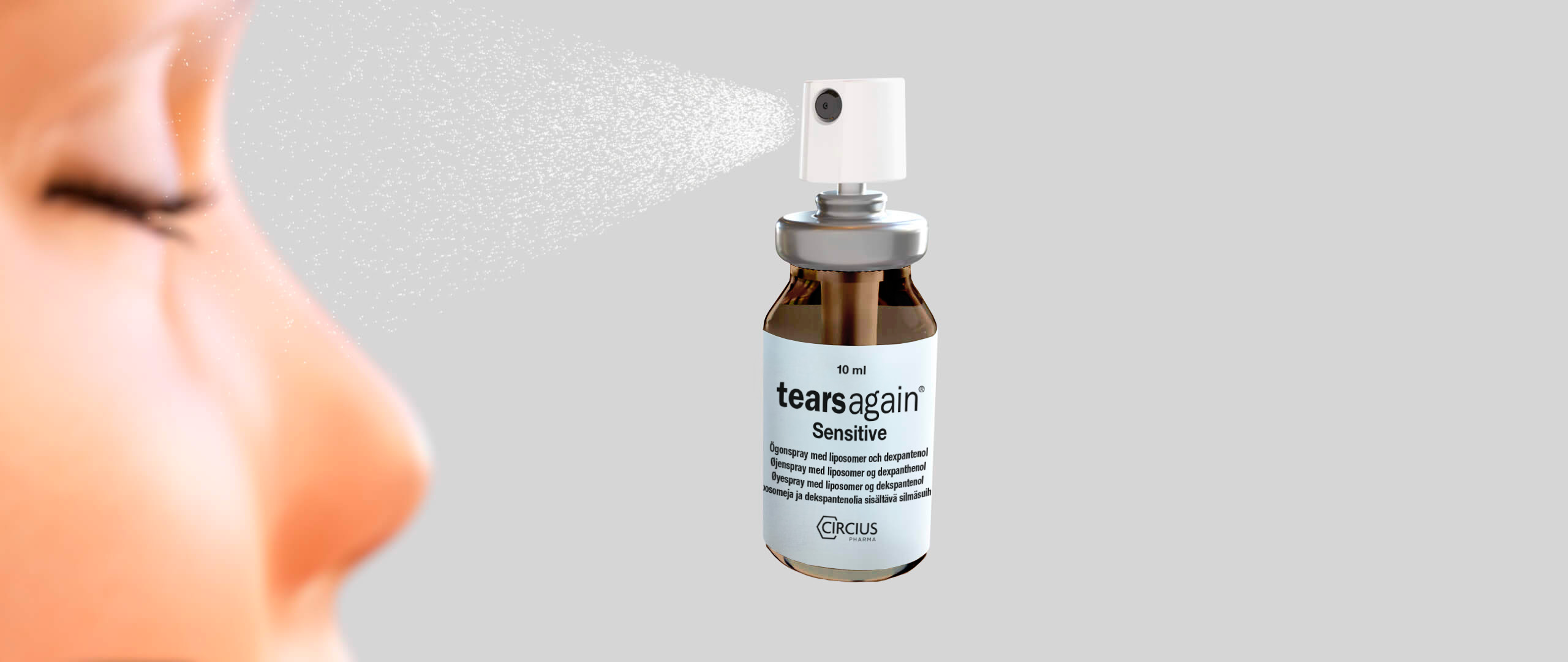 Hvis du ønsker at få en større viden om, hvordan Tearsagain lipidspray fungerer, kan du se instruktionsfilmen. I stedet for at tilføre væske, som klassiske øjendråber gør, reducerer Tearsagain lipidspray fordampningen fra øjet. Det sker ved at stabilisere øjets yderste fedtlag, som holder på øjets naturlige fugtighed.